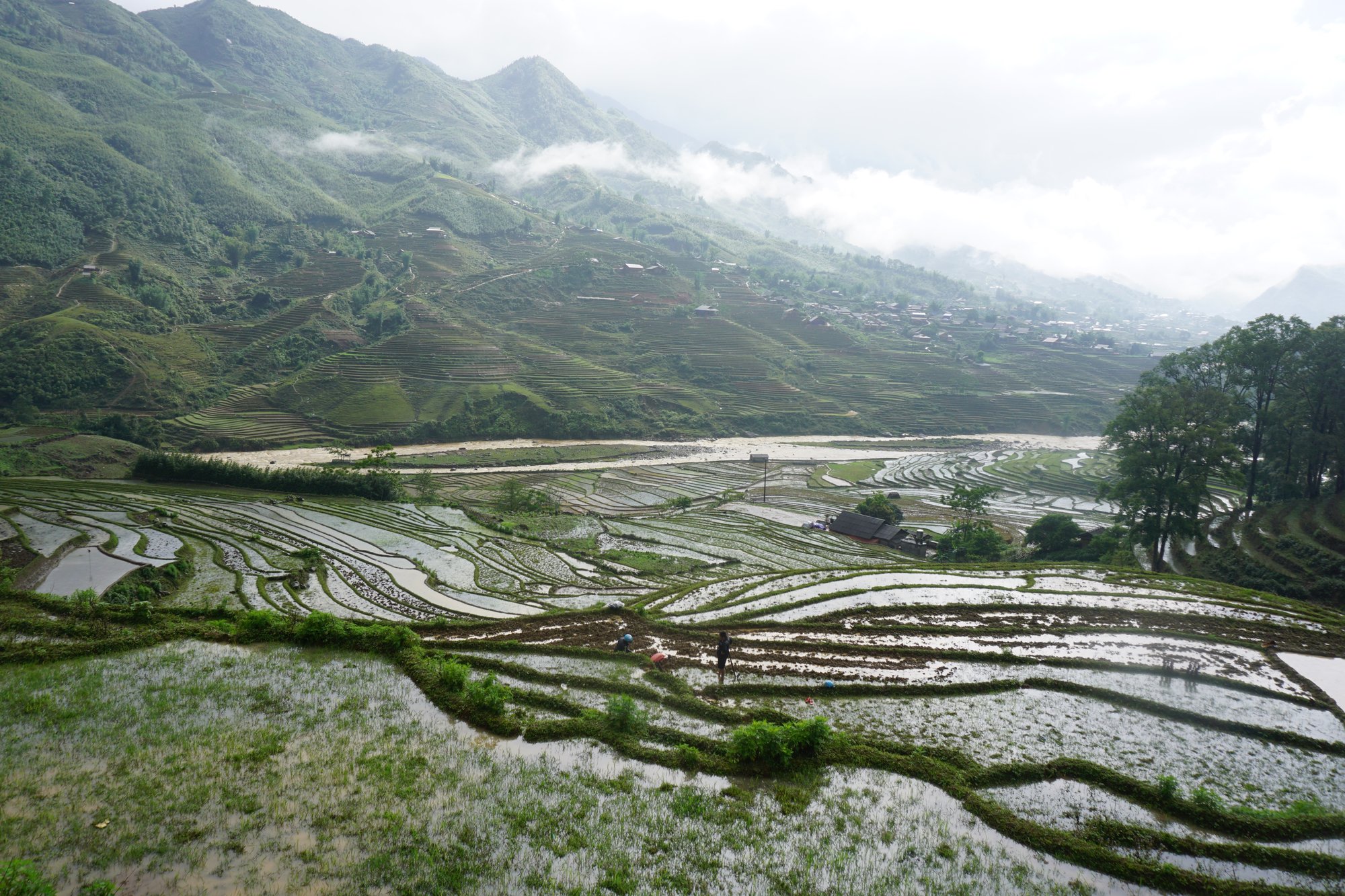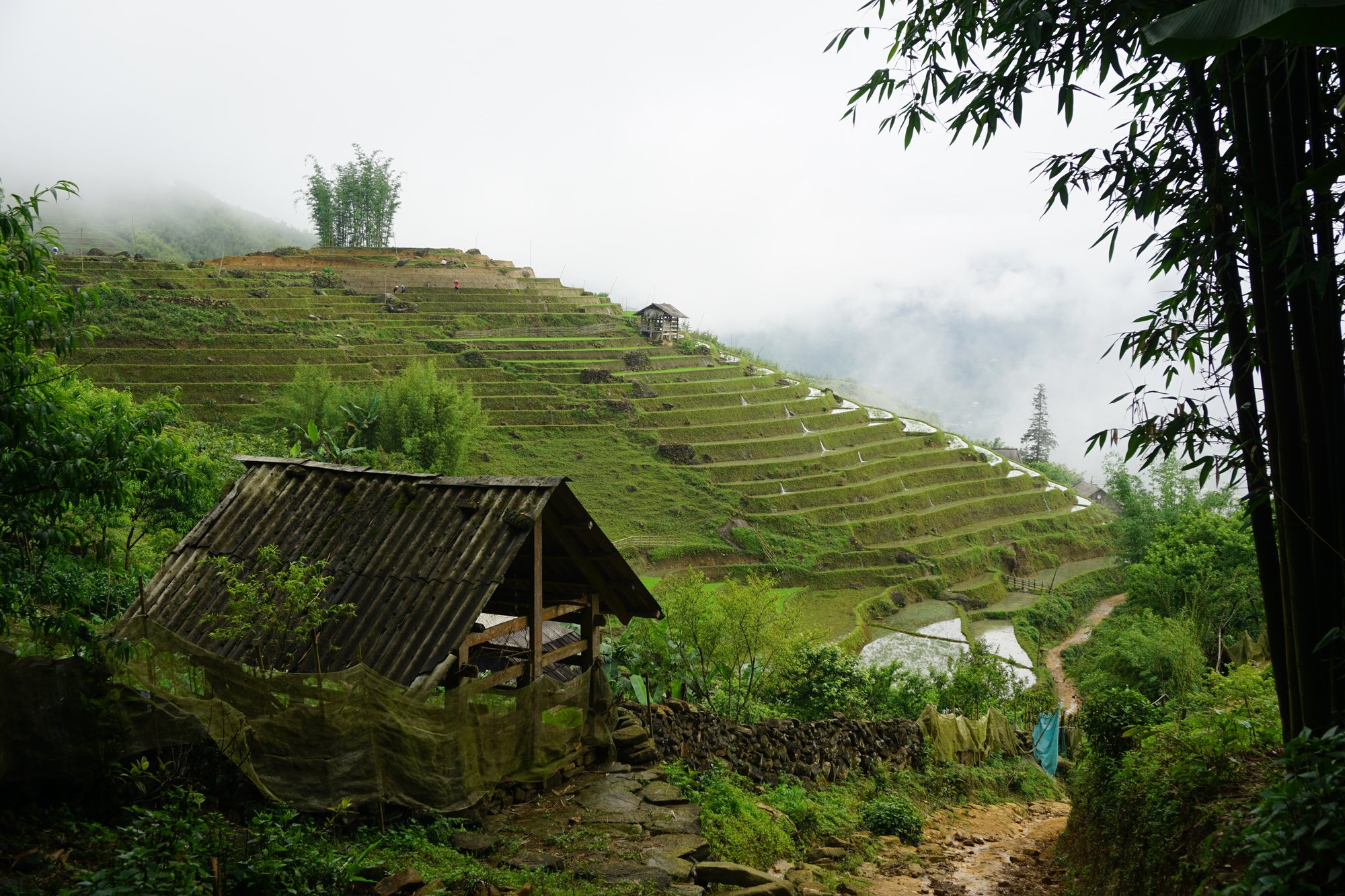 Tijdens de trekking heeft Sapa echt een plek in ons hart veroverd. Ik heb nog nooit zo'n landschap gezien en je raakt er gewoon niet uitgekeken. Je ziet bergtoppen verstopt in de wolken, water stroomt op allerlei plekken de berg af en je kunt de rijstterrassen echt niet tellen, zoveel zijn het er! Op internet hebben we al zoveel foto's gezien van Sapa, maar in werkelijkheid ontdek je pas echt de schoonheid van deze regio.