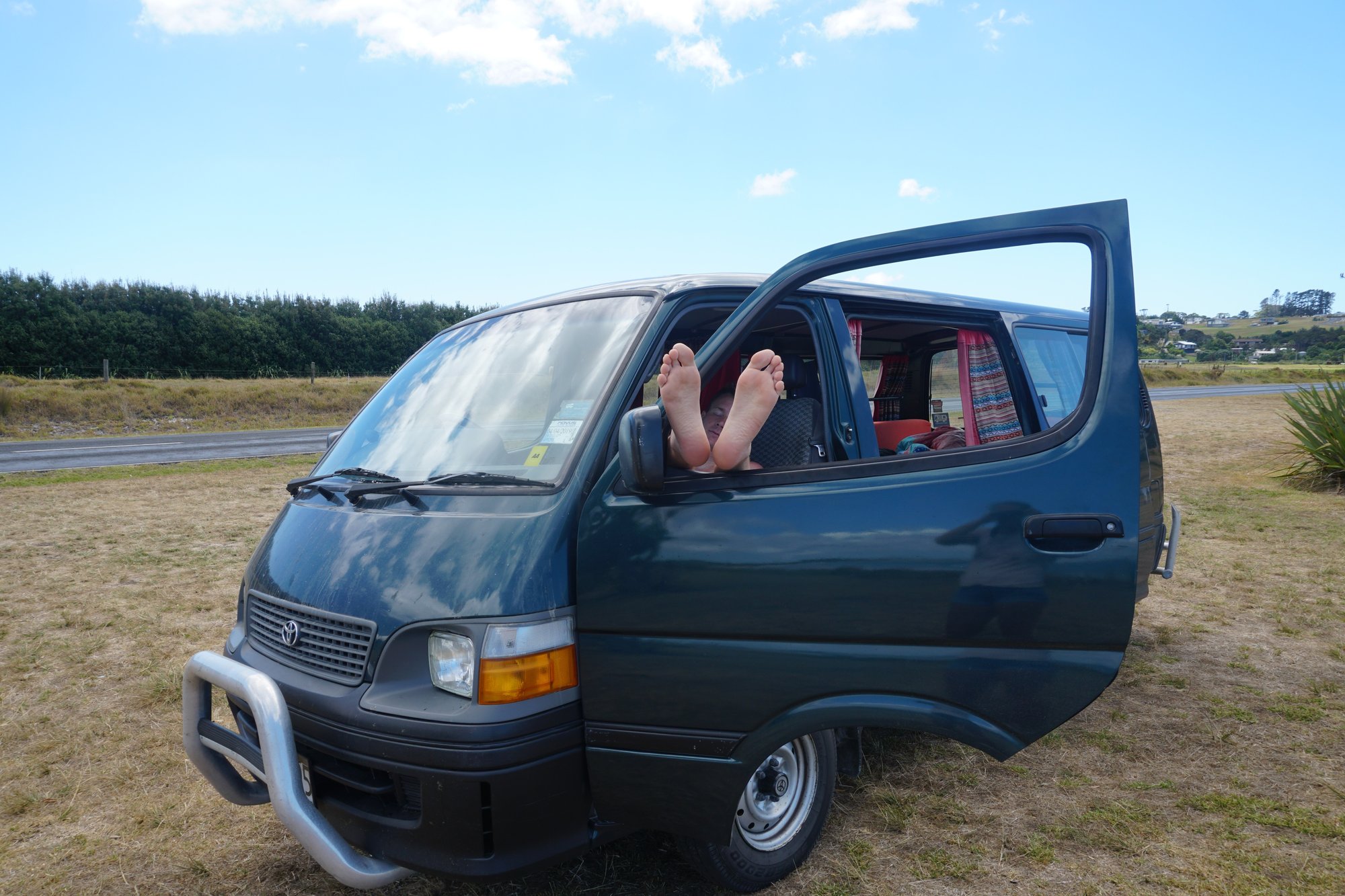 Wij hebben ervoor gekozen om een campervan te huren en lang gezocht naar een betaalbaar exemplaar. In het hoogseizoen (december t/m februari) liggen de huurprijzen nou eenmaal véél hoger dan in de Nieuw-Zeelandse winter. Na lang zoeken vinden we een klein verhuurbedrijf in Palmerston North waar we Barrie (een self-contained campervan) kunnen huren voor een bedrag van €52,38 per dag. Dit bedrag is fors lager dan wanneer je huurt bij de gevestigde namen, zoals Jucy en Britz. Voor een self-contained campervan bij een bekendere verhuurder ben je in het hoogseizoen wel €80 of meer kwijt per dag. Soms loont het dus zeker om wat meer tijd door te brengen op Google. ;-)