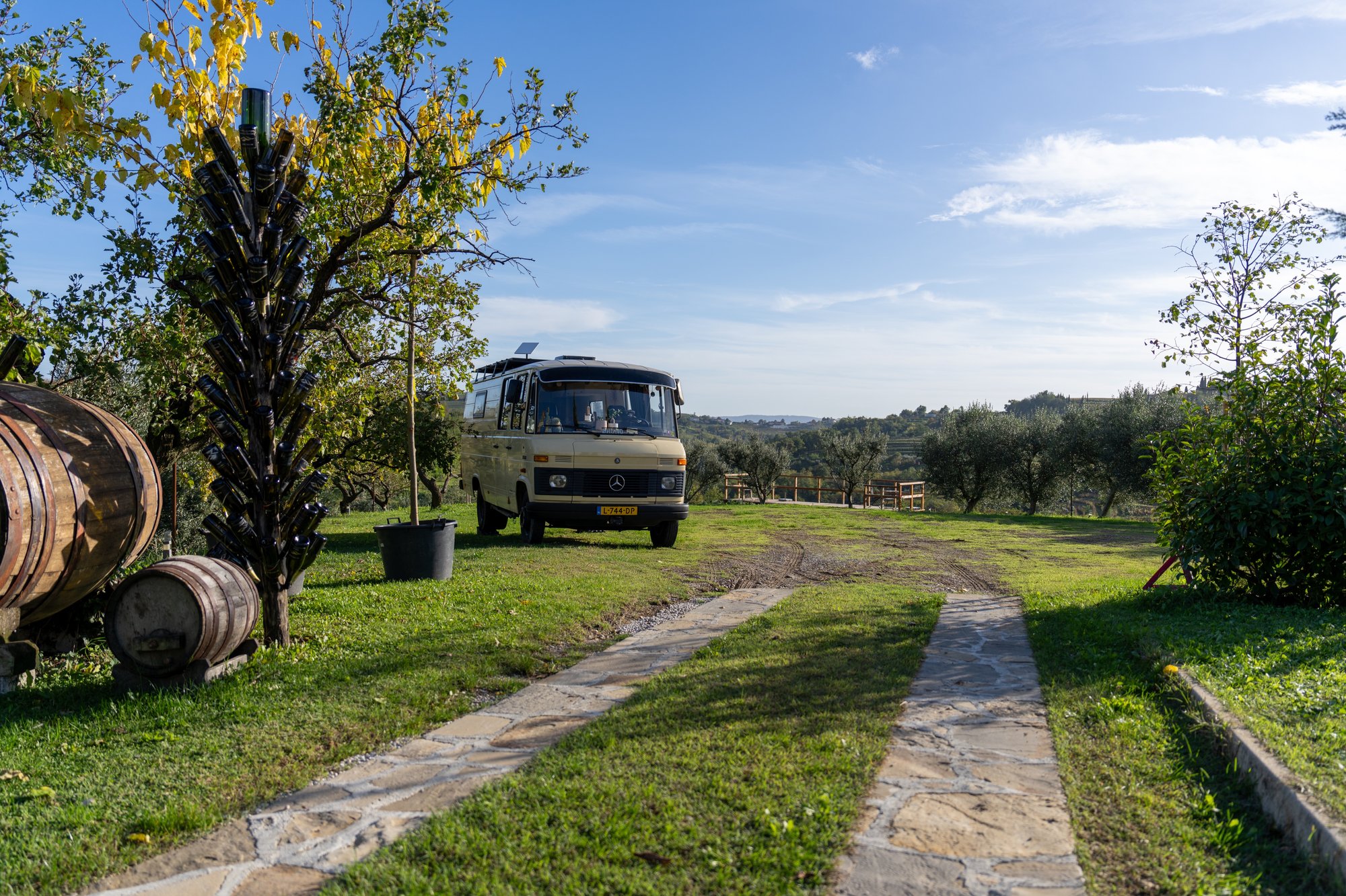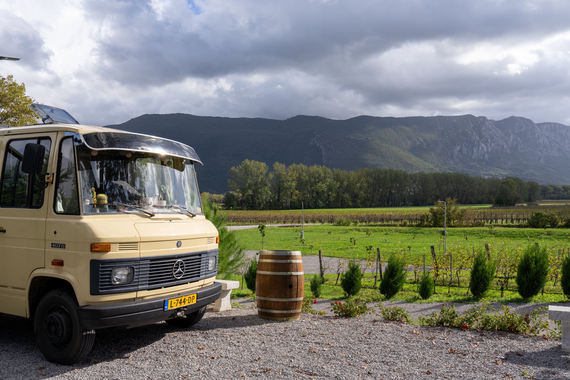Midden in het hart van Brda ligt het kleinschalige wijnhuis Sosolič. Het leuke aan deze plek is dat ze een gratis overnachting met je camper aanbieden als je iets koopt in de winkel of een wijnproeverij doet. Dat laten we ons geen tweede keer zeggen!