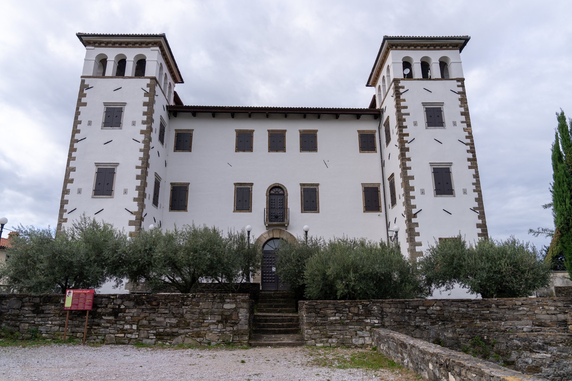 In veel reisgidsen en blogs over Brda lees je ook over het plaatsje Dobrovo. Hier staat een kasteel met wijnkelder en beginnen diverse wandelingen door de omgeving. Wij planden daarom ook een bezoekje aan Dobrovo, maar onze timing was niet ideaal. Op de zondagochtend eind oktober dat wij er waren, was er geen kip op straat. Alles was uitgestorven. Daarnaast bleek Grad Dobrovo (het bekende kasteel) het hele jaar gesloten voor renovatie. Kortom, wij waren binnen een half uurtje alweer weg en kunnen je dus geen tips geven voor Dobrovo of het kasteel. Helaas!